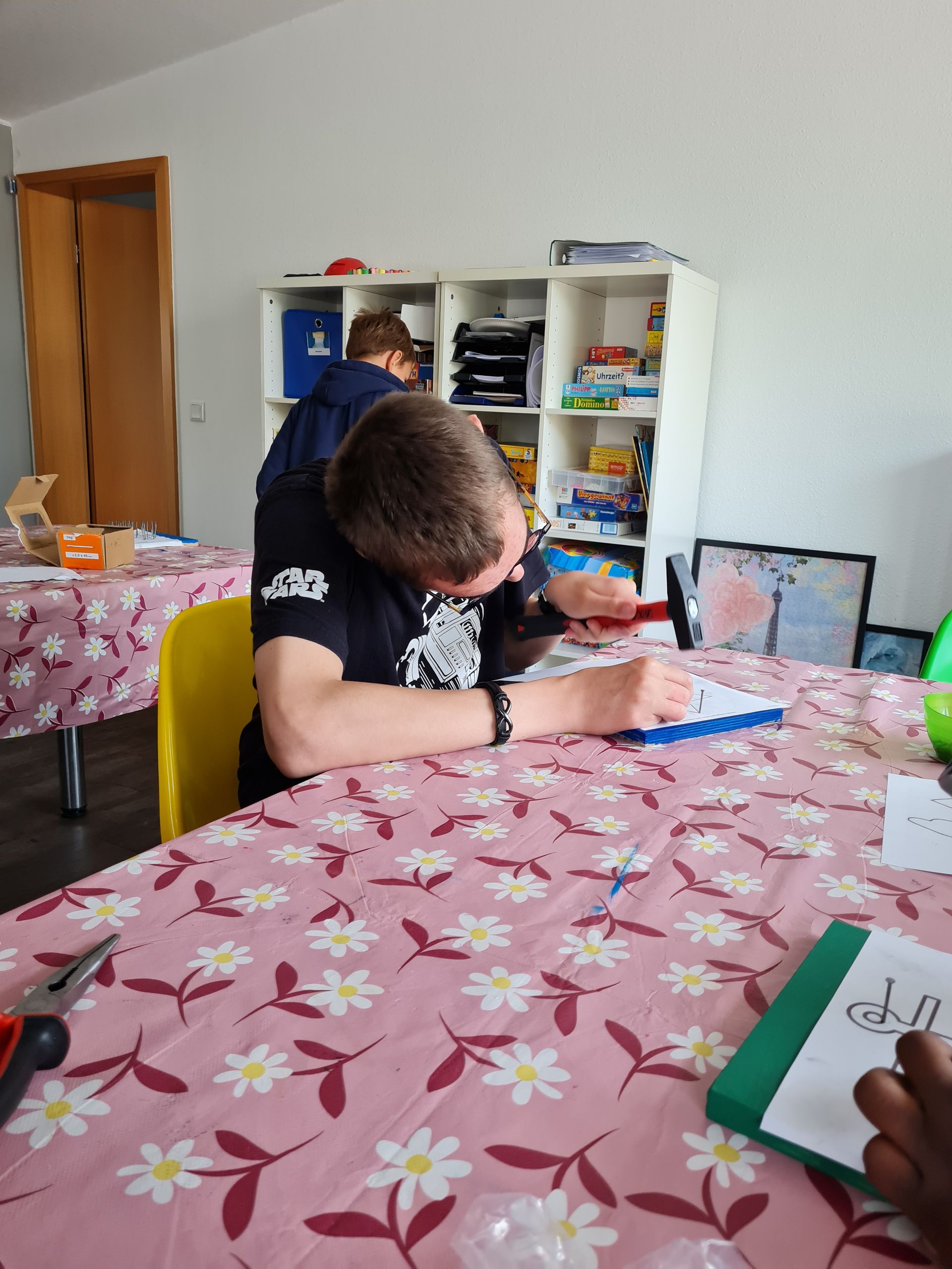 Schönes Wetter, ganz viel Spaß und verschiedene Ausflüge fanden in diesen Ferien statt. Zum Beispiel waren wir im 4-Jahreszeiten Park Oelde, denn dort gibt es verschieden Spielplätze und ein Floß, mit dem man sich von der einen zur anderes Seite ziehen kann. Des weiteren wurden "Nagel-Bilder" erstellt. Der Umgang mit Hammer und Nagel wurde fleißig und mit viel Freude geübt; zum Glück sind alle Finger heile geblieben. Unser hauseigener Pool wurde ausgiebig genutzt. Eine Übernachtung mit abendlichem Kinofilm und spannenden Geschichten wurde mit einem reichhaltigen Frühstück beendet. Leider gehen die Ferien immer viel zu schnell zu Ende.