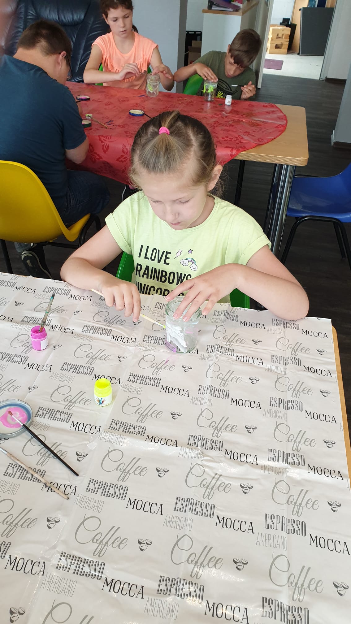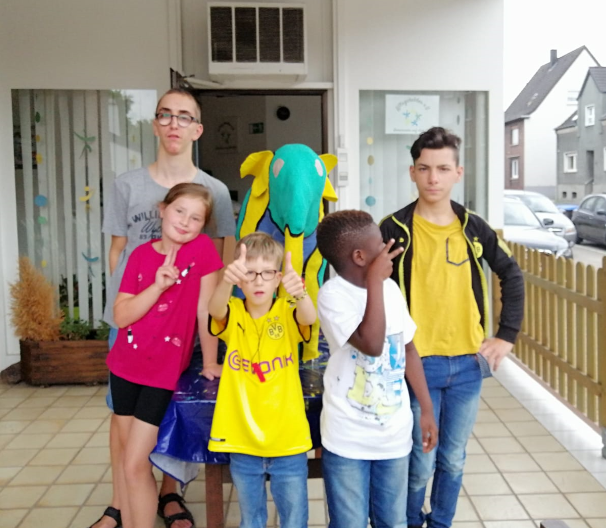Unsere Sommerferien waren voller verschiedener Projekte. Wir haben gemeinsam ein großes „Mensch ärgere Dich nicht" Spiel aus einer großen Kabeltrommel gemacht. Für die Figuren haben wir Flaschen gefärbt und mit Sand gefüllt. Ein Wurfspiel haben wir gebaut und bemalt. Jeder hat mal etwas ausgemalt und alle haben sich sehr viel Mühe gegeben, damit es ordentlich ist. Ein paar Tage später haben wir uns intensiv mit Experimenten beschäftigt, zum Beispiel haben wir geschaut was passiert, wenn wir ein Ei in Essig einlegen. Ihhh, es wurde ganz weich und die Schale war verschwunden. In dem Zuge sind wir auf die Halde gestiegen, mit einer Spitzhacke bewaffnet und haben dort Fossilien gesucht. Wir konnten reichlich finden. Ganz schön spannend! Am nächsten Tag haben wir uns dann im Naturkundemuseum Dortmund Fossilien anschauen können von vor vielen vielen Jahren. Und bei so viel Sonne waren wir auch im Maximilianpark und haben dort die Abkühlung am Wasserspielplatz genossen. Zum ersten Mal haben wir die Kinderferien Party besucht und haben auch dort viel Spaß gehabt.