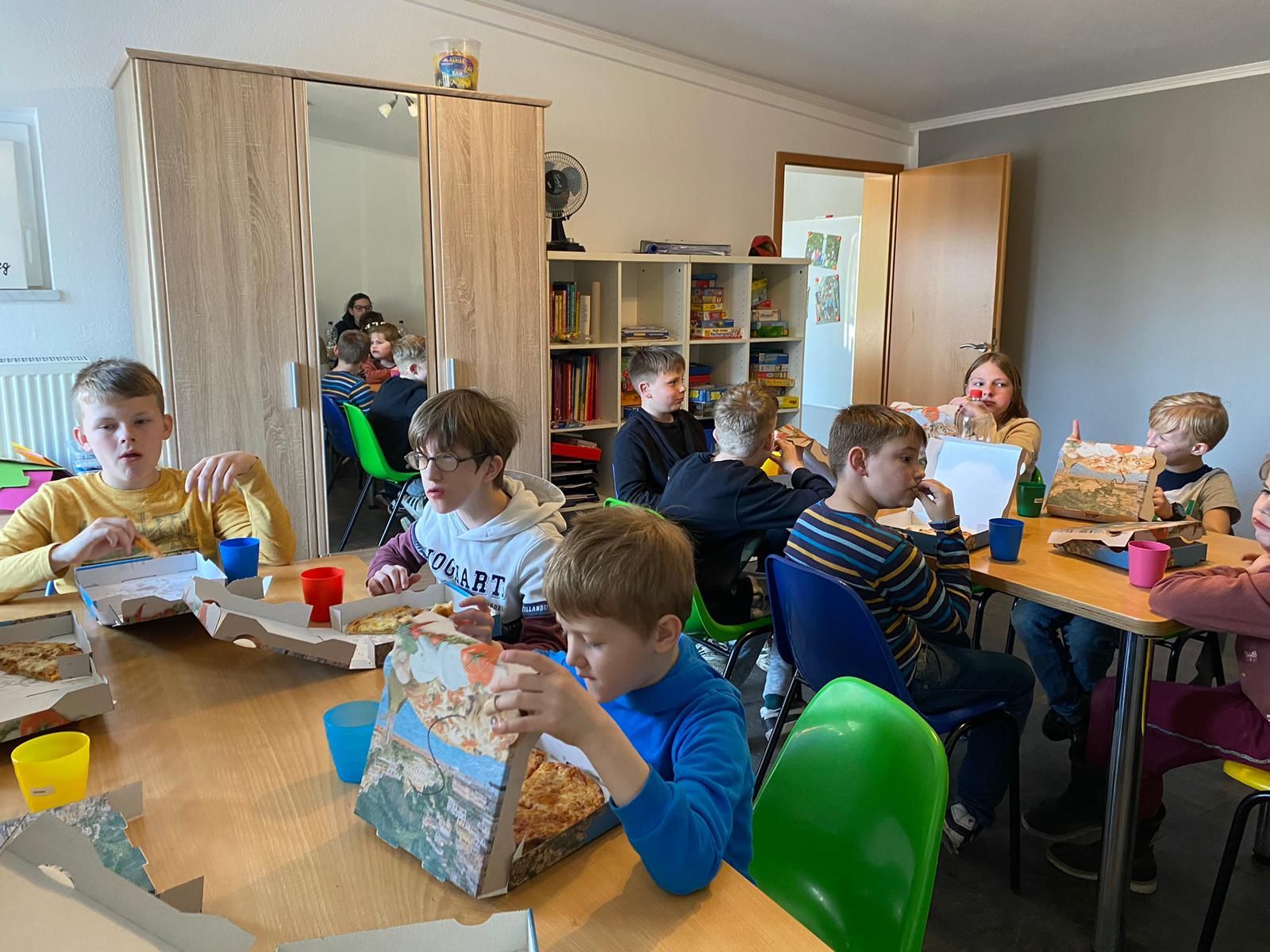 In den Osterferien 2023 haben wir uns ganz viel mit dem Thema "Wellness" beschäftigt. Jeder konnte sich eine Seife in verschiedenen Farben mit unterschiedlichen Gerüchen erstellen. Mit leckeren selbst gepressten Säften und einer Maske aus Quark und Gurken auf den Augen (oder auf den Händen) konnten wir uns super entspannen. Damit wir aber nicht vor lauter Entspannung nur faul rum liegen, haben wir auch noch eigenen Flipper gebaut. Dazu musste gesägt, geschraubt und ganz viel Holz geschliffen werden. Die Flipper sind großartig geworden und machen richtig viel Spaß. Eine kleine Ostereiersuche durfte natürlich auch nicht fehlen.