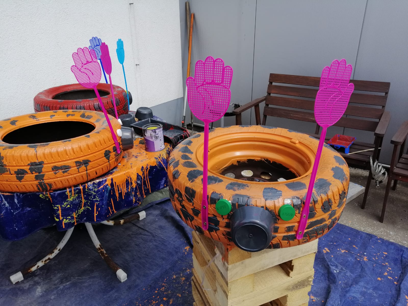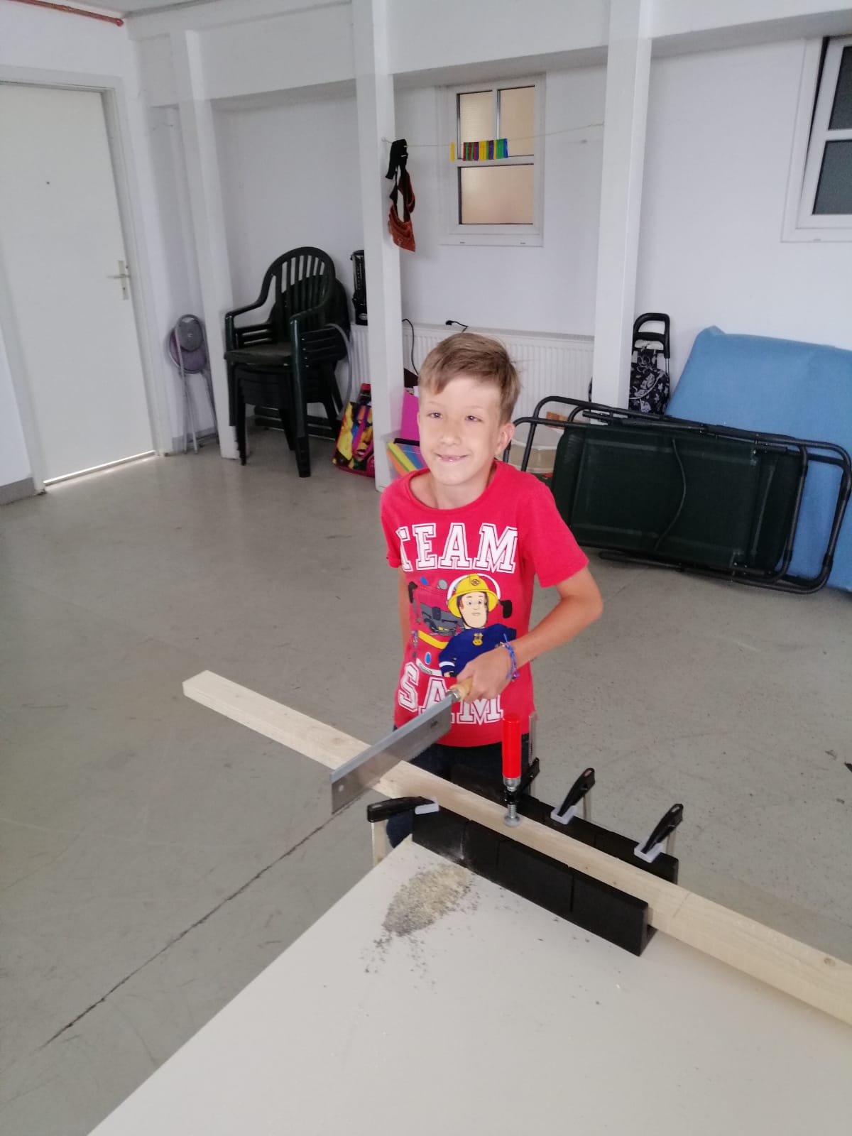 In den Osterferien 2023 haben wir uns ganz viel mit dem Thema "Wellness" beschäftigt. Jeder konnte sich eine Seife in verschiedenen Farben mit unterschiedlichen Gerüchen erstellen. Mit leckeren selbst gepressten Säften und einer Maske aus Quark und Gurken auf den Augen (oder auf den Händen) konnten wir uns super entspannen. Damit wir aber nicht vor lauter Entspannung nur faul rum liegen, haben wir auch noch eigenen Flipper gebaut. Dazu musste gesägt, geschraubt und ganz viel Holz geschliffen werden. Die Flipper sind großartig geworden und machen richtig viel Spaß. Eine kleine Ostereiersuche durfte natürlich auch nicht fehlen.