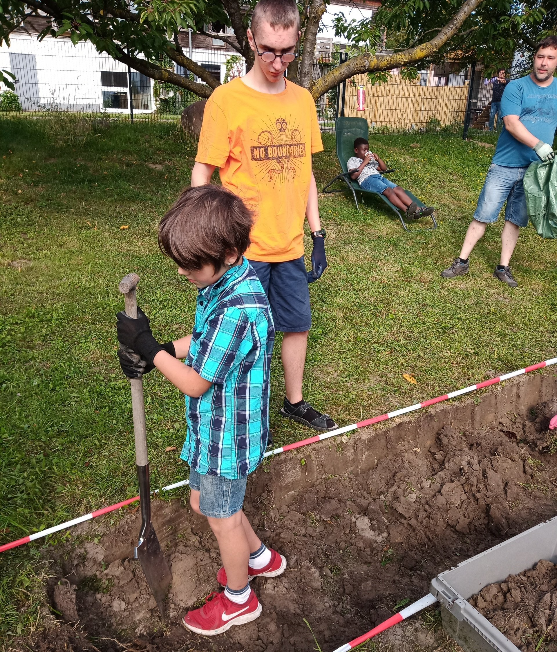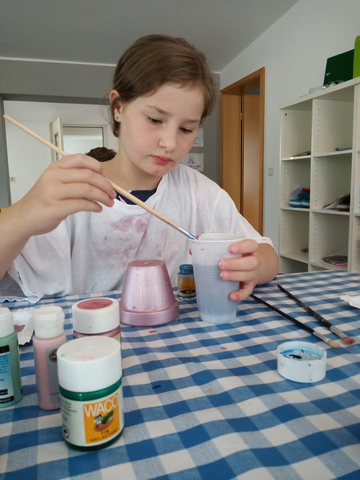 Unsere Sommerferien waren voller verschiedener Projekte. Wir haben gemeinsam ein großes „Mensch ärgere Dich nicht" Spiel aus einer großen Kabeltrommel gemacht. Für die Figuren haben wir Flaschen gefärbt und mit Sand gefüllt. Ein Wurfspiel haben wir gebaut und bemalt. Jeder hat mal etwas ausgemalt und alle haben sich sehr viel Mühe gegeben, damit es ordentlich ist. Ein paar Tage später haben wir uns intensiv mit Experimenten beschäftigt, zum Beispiel haben wir geschaut was passiert, wenn wir ein Ei in Essig einlegen. Ihhh, es wurde ganz weich und die Schale war verschwunden. In dem Zuge sind wir auf die Halde gestiegen, mit einer Spitzhacke bewaffnet und haben dort Fossilien gesucht. Wir konnten reichlich finden. Ganz schön spannend! Am nächsten Tag haben wir uns dann im Naturkundemuseum Dortmund Fossilien anschauen können von vor vielen vielen Jahren. Und bei so viel Sonne waren wir auch im Maximilianpark und haben dort die Abkühlung am Wasserspielplatz genossen. Zum ersten Mal haben wir die Kinderferien Party besucht und haben auch dort viel Spaß gehabt.